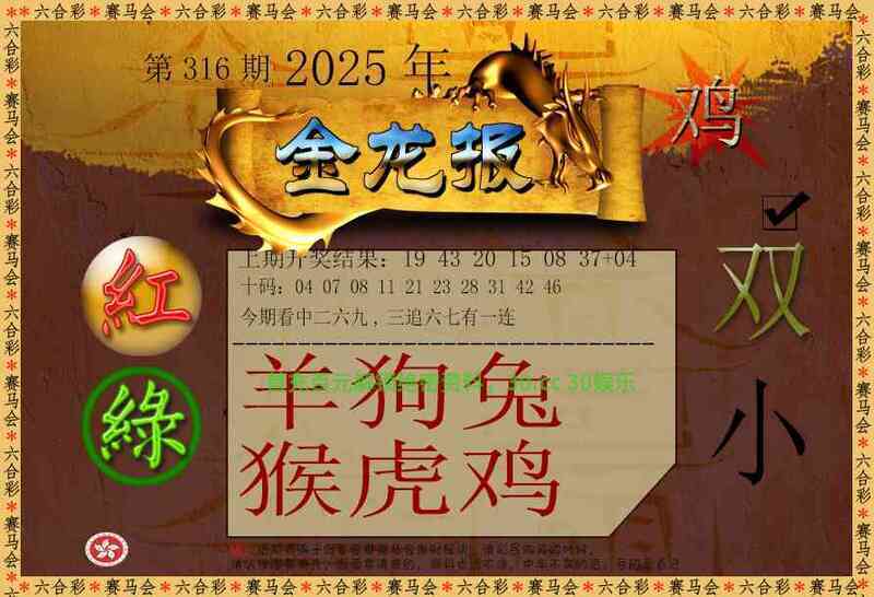| 316期七肖 | 鸡鼠猴猪马兔龙 | 开:马24准 |